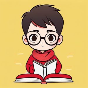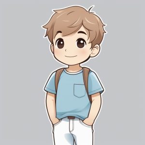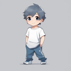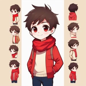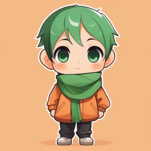 Minimalist Chibi Anime Boy with Light Blue Scarf Full Body