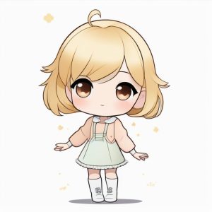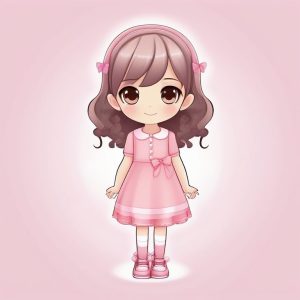 Minimalist Chibi Girl with Sakura Pink Long Hair