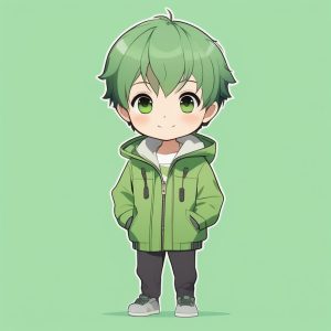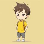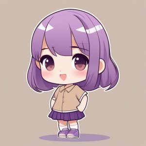 Minimalist Chibi Purple-haired Boy Full Body with Plain Background