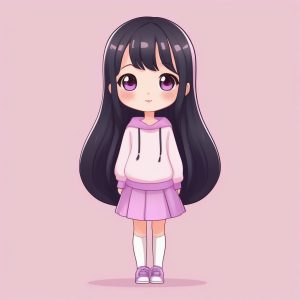 AI art prompt English:A Minimalist Chibi Purple Long Hair Sweater Girl