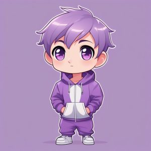 Minimalist Chibi Anime Boy with Purple Big Eyes Full Body