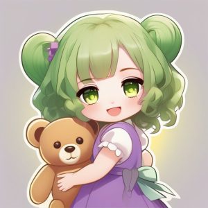 Minimalist Chibi Girl in Purple Dress Elegant Kawaii