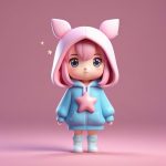 AI art prompt English:Minimalist Chibi Brown Hair Reading Girl Blind Box Toy 3D Render
