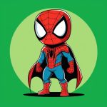 Minimalist Cyan Green Chibi Miles Spider-Man Full Body Cartoon