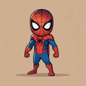 Minimalist Cyan Green Chibi Miles Spider-Man Full Body Cartoon
