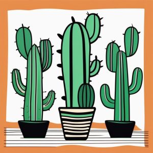 A minimal line art doodle illustration of a small cactus in a pot, drawn with thick black lines and no inner texture, placed on a clean mint green solid background. The cactus has round arms and tiny dots for spines, creating a cute and light-hearted look. The composition avoids unnecessary embellishments, making the quirky cactus pop against the simple background.
