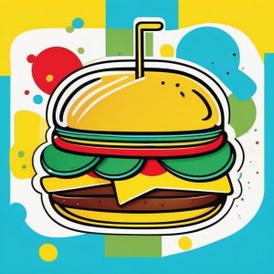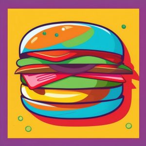 Minimalist stylized food illustration of a hamburger, flat vector shapes, simple block colors, no outline, minimal shadow, clean background, minimalist stylized food illustrations.
