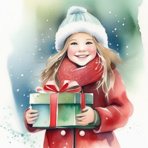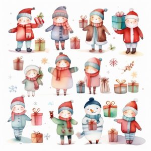 A minimalist watercolor illustration featuring a cute baby deer surrounded by pastel-colored Christmas gifts, painted with delicate brush strokes and soft color transitions. The scene is set against a white background, emphasizing gentle contrasts and playful festive details. Subtle splashes of red and green add a whimsical holiday feel, while the deer’s big sparkling eyes and tiny antlers enhance its charm. Overall, the composition is airy and uncluttered, radiating warmth and innocence, perfect for children’s storybooks or holiday greeting cards. Modern Christmas watercolor clipart style, soft lighting, simple shapes.