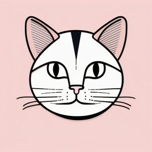 一幅极简涂鸦趣味线条艺术图标插图,一只微笑的猫咪,用粗而有趣的黑色线条绘制在纯色粉红背景上。猫咪有夸张的大头、尖耳朵和简单的圆眼睛,尾巴呈松散螺旋状。没有阴影或额外细节,突出简约形状,营造一种童趣的效果。干净的构图和无背景图案使主体猫咪更加突出,展现其迷人简洁的风格。采用轻松的卡通风格,带来可爱极简与愉快的氛围。