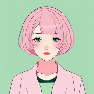 极简主义风格正面少女肖像,中央构图,深紫色纯色背景。平面配色,基础线条,细节极少,表情平静。