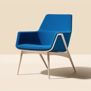 现代极简室内设计风格中一把舒适的椅子,位于干净的纯灰色背景。造型简单,色彩素雅,无装饰性图案,体现实用美感,线条清晰。