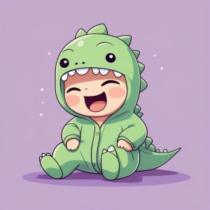 AI art prompt English – Minimalist Line Art Chibi Dinosaur Trainer Character Illustration Design