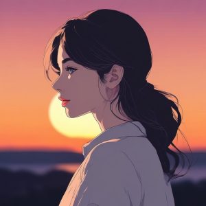 以极简动漫风格为中心的全身插画,一个微笑站立的时尚女孩,穿着基础款背心,搭配简约的项链。画面强调厚重的粗线条轮廓和无阴影的平面色彩填充。整体采用低饱和度的马卡龙色调。背景是纯色,干净且空旷,完全没有任何细节或图案。