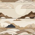 A single, elegant ceramic teapot illustrated in minimalist Japanese woodblock print style. Muted earth tones and simple, bold outlines set against a solid warm cream background. The teapot’s graceful form is emphasized, with no texture or surface pattern, conveying peace, balance, and subtle tradition.