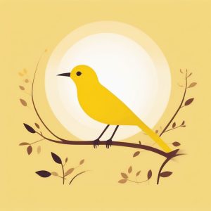 一幅极简主义矢量风格的抽象热带鸟类海报。鸟的身体由橙色、蓝色和绿色的重叠形状构成。翅膀通过两条简洁的曲线表现,无羽毛细节。树枝为粗直线。背景为浅青色,并有一个黄色大太阳圆。大量负空间环绕鸟体,增强视觉冲击。造型鲜明清晰,无纹理或小元素,呈现活泼又简洁的画面。