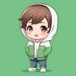 Simple Chibi Anime Kawaii Green-Cap Boy Full Body Illustration