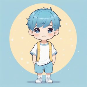 Simple Chibi Anime Kawaii Green-Cap Boy Full Body Illustration