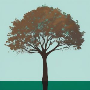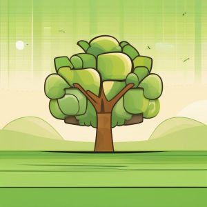 A whimsical doodle-style clipart of a tree, illustrated with childlike simplicity and creativity. The tree is composed of big, rounded green foliage and a straight brown trunk, outlined with bold lines. There is no shading or texture. The background is a solid, clean light orange color, without any additional details. The style looks like it was hand-drawn by a child with markers, focusing on visual clarity and joyful expression.