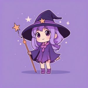 AI绘画提示词中文 – 简约2D卡哇伊Q版星空女巫AI绘画提示词推荐