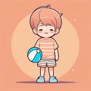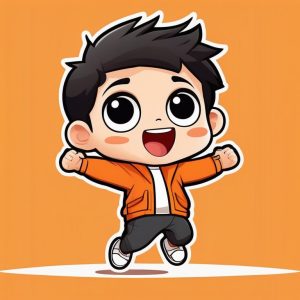 Minimalist Full Body Chibi Boy Happily Jumping, Green Solid Background