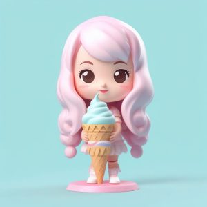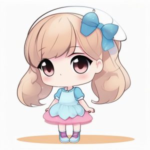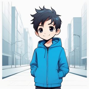 Simple Chibi Anime Girl Full Body, Blue Hoodie, Solid White Background