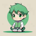 Minimalist Chibi Anime Kawaii Boy in Overalls Full Body