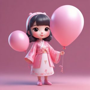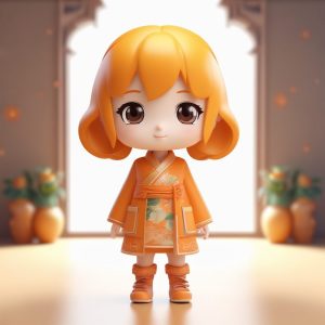 🌸锦鲤好运!粉橘配色国风Q版女孩,C4D手办级全身图生成 – AI 绘画提示词(中文):