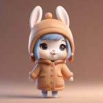 AI绘画提示词(中文) – 惊喜瞬间Q版:手捂嘴巴的动态面包服女孩3D模型