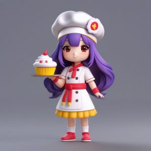 AI art prompt English – Kawaii Chibi Chef Girl AI Art Prompt: Minimalist Anime Character Full Body Illustration