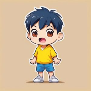 Kawaii Chibi Girl Full Body on Solid Purple Background – Surprised Open Mouth
