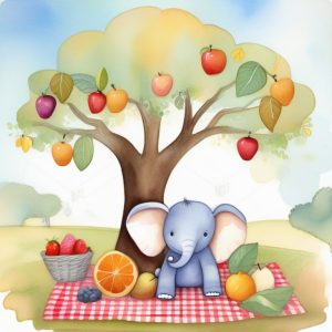 AI绘画提示词中文:可爱儿童绘本风格,一只抱着彩虹雨伞的小象站在嫩绿色草地上,水彩手绘,温柔圆润轮廓,微笑表情,雨滴点缀画面,温馨童趣十足。