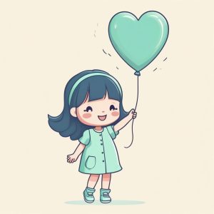 AI art prompt English – Cute Kawaii Chibi Character Design: Pouting Girl Full Body Image in Minimalist Solid Color Style