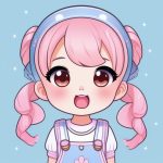 Cute chibi girl Full Body: Blue Dress and Smiling Pose