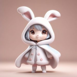 AI绘画提示词中文 – 可爱Q版兔女郎:比耶手势,C4D高抛光、纯淡紫色背景