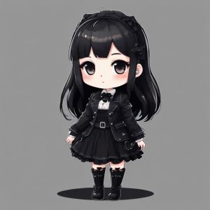 🖤克莱因蓝撞色Chibi:超酷几何风Q版全身像,纯白背景 – AI 绘画提示词(中文):