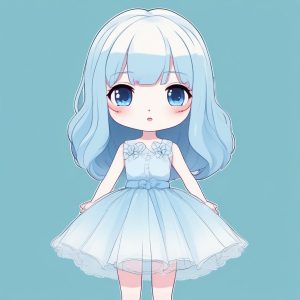 💙Klein Blue Chibi Prompt: Color Contrast, Pure White BG – AI art prompt(English) :