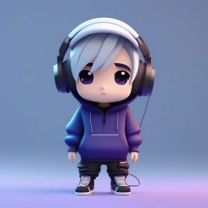 AI art prompt English – Cool Chibi Pose: Volumetric Lighting & Indigo Hoodie