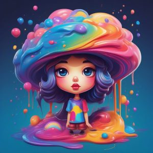 AI art prompt English – Exaggerated Surreal Geometric Chibi Girl Abstract