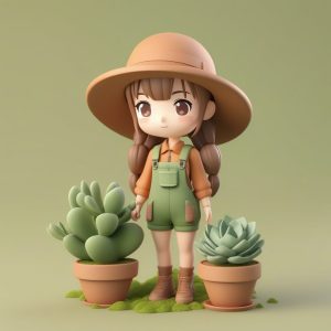 AI绘画提示词中文 – 快乐小多肉:海沫绿背景下的手绘盆栽涂鸦