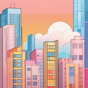 A pastel city pop anime scene portraying a lush indoor tropical garden, with oversized monstera and palm leaves, vibrant pink and teal flowers, and glass panels reflecting soft daylight. Abstract sculpture art is scattered among the vegetation. The plants’ exaggerated shapes and rich colors create a fantasy-like atmosphere. The background features a dreamy blur, enhancing the magical vibe of the garden.