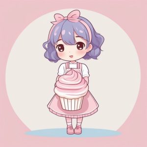 AI art prompt English – Pastel Doodle Chibi Boy: Exaggerated Delight Holding Giant Cookie