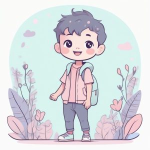 AI绘画提示词中文 – 马卡龙色棒棒糖男孩:Q版涂鸦画风,夸张互动全身像