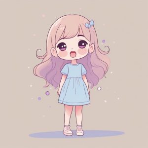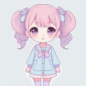 AI art prompt English – Pastel Doodle Chibi Girl with Pigtails – Minimalist Full Body