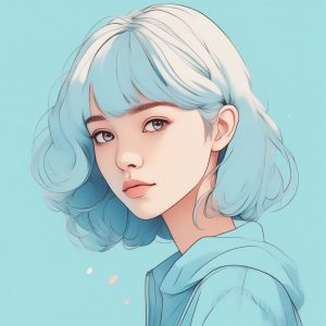AI art prompt English – Sky Blue Macaron: Minimalist Portrait with Focused Gaze Prompt