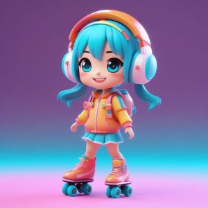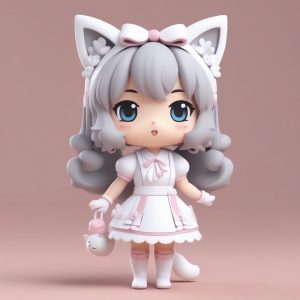 AI绘画提示词中文 – 盲盒风格3D Q版太空女孩:极简主义动漫角色AI绘画提示词