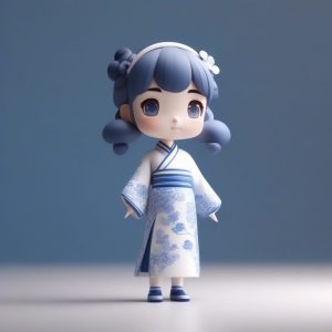 AI art prompt English – Pop Mart Chibi Qipao Girl: Blue and White Porcelain 3D Render