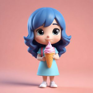 A full body standing cute chibi cat lover character 3D render. She is wrapped up by three playful kittens, showing an interesting expression that is both pampered and slightly helpless. This adorable character uses clay material and soft pastel colors. C4D and Octane rendering combined with ray tracing ensures high detail and 8k sharpness. Soft studio lighting is used, set against a clean, simple, solid color background, completely empty, with no patterns or textures, embodying the blind box aesthetic.