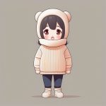 AI art prompt(English) – High-Neck Sweater Minimalist Anime Girl Low Saturation Pink Cel Shading