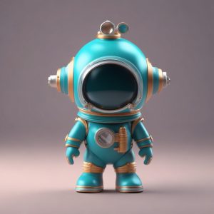 生成拥有蓝色夜光帽的梦幻Q版蘑菇精灵。采用Octane渲染和光线追踪,实现高细节的盲盒手办效果,姿势宁静。