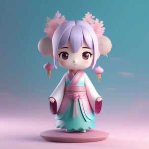 AI art prompt English – Dreamy Fairy Tale Chibi Hanfu Figurine, Volumetric Light